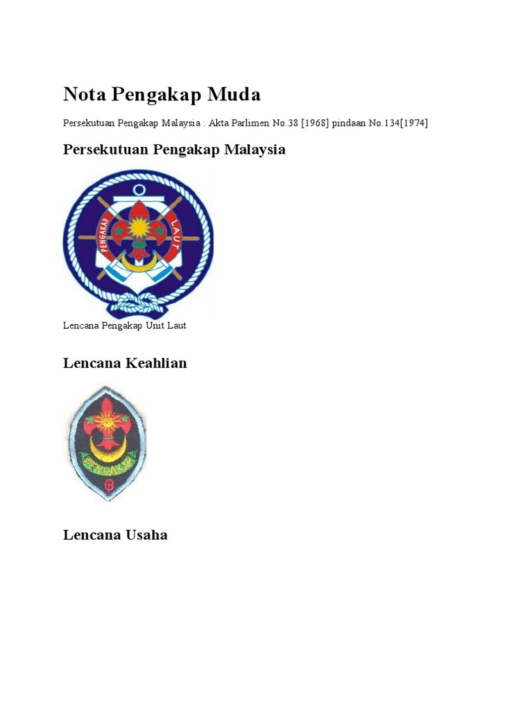 Buku Panduan Persekutuan Pengakap Malaysia ialah dokumen yang memerincikan garis panduan khusus untuk guru-guru yang telah dilantik sebagai jurulatih dan guru pembimbing unit-unit yang dikhaskan. Pengakap Laut View my complete profile. Lencana Pengakap Laut Malaysia ini merupakan lencana aktiviti yang hanya diguna pakai pada tshirt aktiviti dan bendera Pengakap Laut.